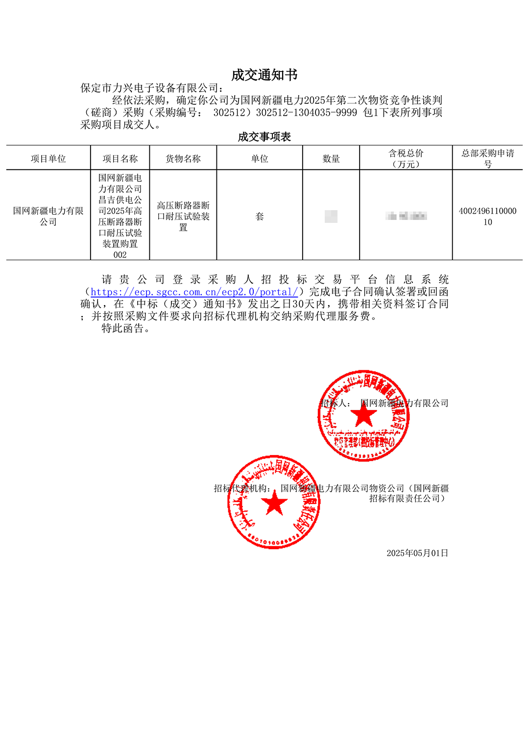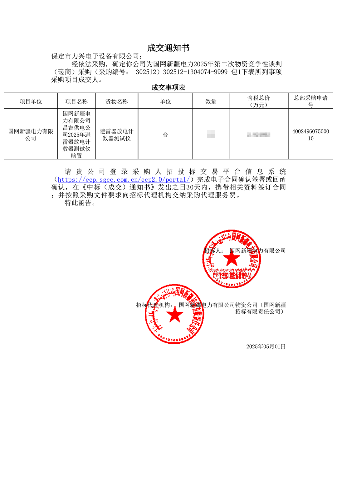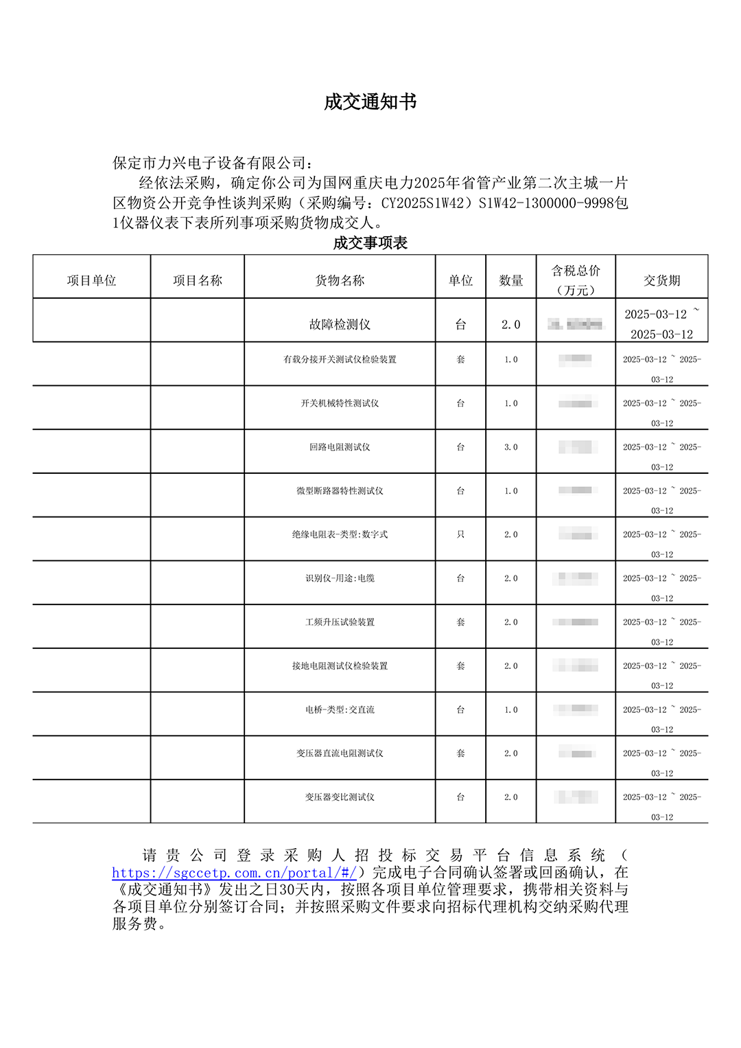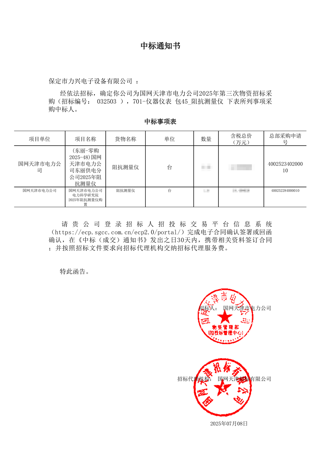 保定市力兴电子设备有限公司第二季度中标通知如下展示,我们将团结一致,再接再厉,迎接已经到来的第三季度。